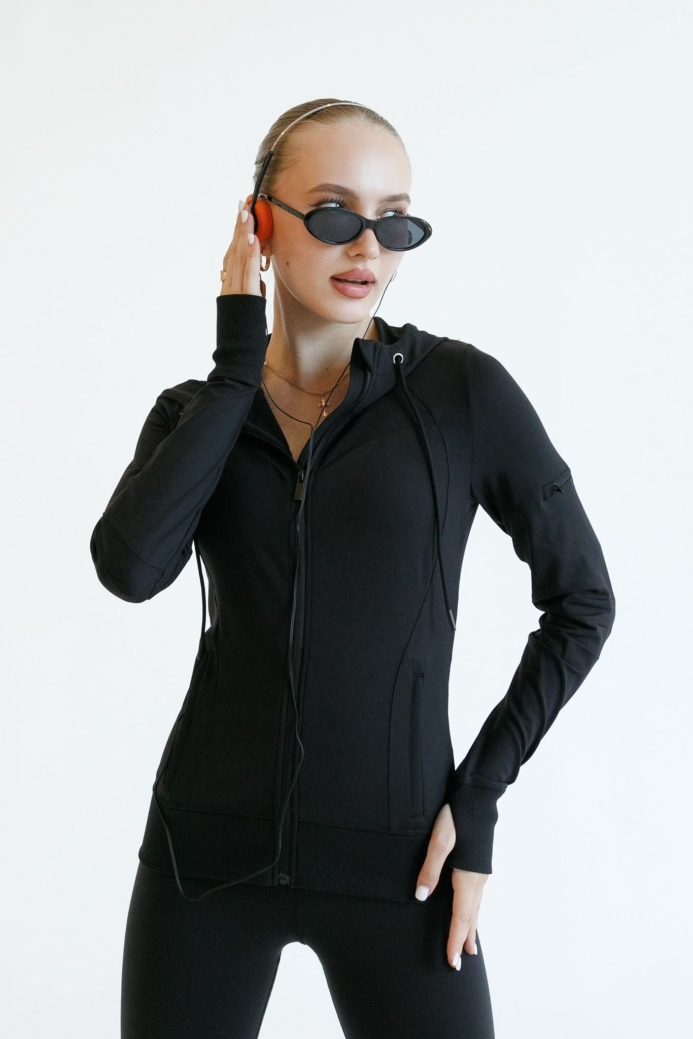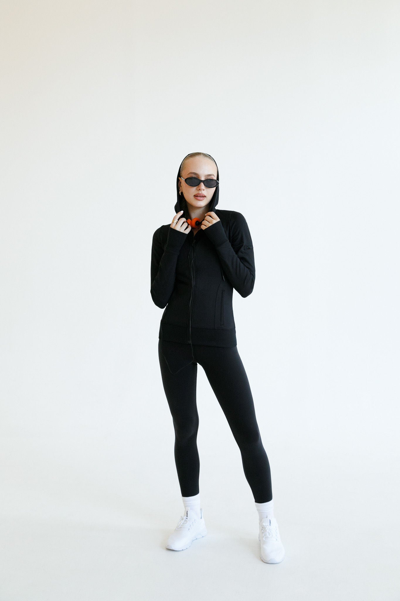 This is what peak performance looks like: a fitted, high-collar jacket with hood designed to take you from studio to street in any weather. Lightweight & warming, with elevated seam design & thumbholes— the Guru Jacket is perfect solo or layered under your favourite outerwear.